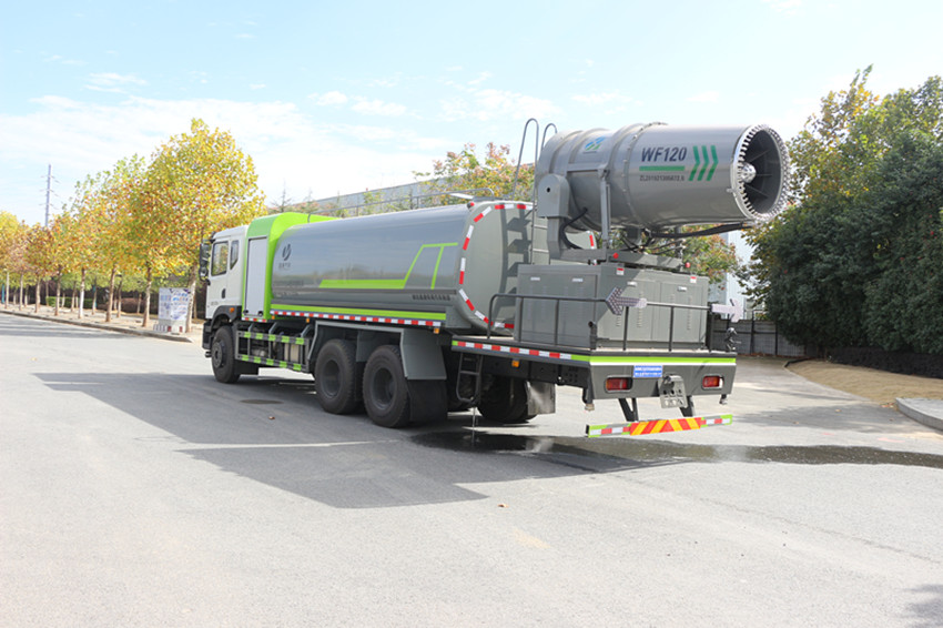東風(fēng)17方大型霧炮灑水車簡(jiǎn)述 抑塵車又稱為綠化噴灑車、多功能灑水車、園林綠化灑水車。抑 塵車適合于各種路面沖洗,樹木、綠化帶、草坪綠化,道路、廠礦企業(yè) 施工建設(shè),高空建筑沖洗。抑塵也可以作為運(yùn)水車使用,最常見的車 型有綠化噴灑車、多功能灑水車、綠化灑水車幾大類。 我公司產(chǎn)品標(biāo)配前噴(鴨嘴)、后沖、后灑、側(cè)噴、后置式工作 平臺(tái),平臺(tái)上配置綠化水炮(可 360°旋轉(zhuǎn),既可以調(diào)成柱狀,也可 以調(diào)成霧狀,更可以調(diào)成直沖狀、大雨、中雨、小雨、毛毛雨),配 備優(yōu)質(zhì)大功率專用灑水泵(可自吸自排,可從河里或池塘抽水到罐體), 取力器,雜物過濾網(wǎng),消防接口,自流球閥系統(tǒng)、取力器、球閥、濾網(wǎng) 均為國(guó)家標(biāo)準(zhǔn)產(chǎn)品,主管道加粗,法蘭墊、法蘭盤加厚,大通徑球閥。 整體具備性能優(yōu)良安全可靠、效率高、流量大、維修方便等特點(diǎn)。