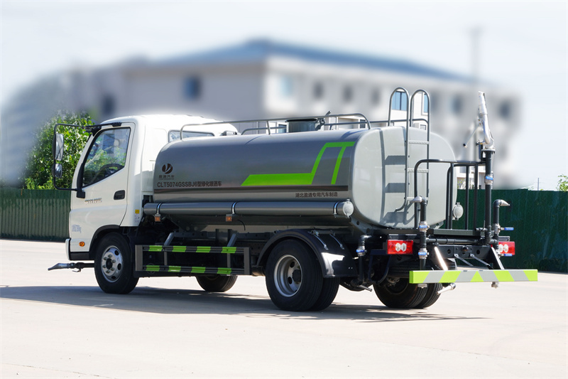 福田奧鈴5方灑水車產品標配前噴(鴨嘴)、后沖、后灑、側噴、后置式工作 平臺,平臺上配置綠化水炮(可 360°旋轉,既可以調成柱狀,也可 以調成霧狀,更可以調成直沖狀、大雨、中雨、小雨、毛毛雨),配 備優質大功率專用灑水泵(可自吸自排,可從河里或池塘抽水到罐體), 取力器,雜物過濾網,消防接口,自流球閥系統、取力器、球閥、濾網 均為國家標準產品