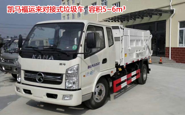 凱馬凱捷側裝式對接壓縮垃圾車,凱捷1830豪華單排,云內95馬力。5檔變速箱,軸距3.3米,4.5噸后橋,7.00-16輪胎,斷氣剎,帶方向助力,ABS,原廠空調。