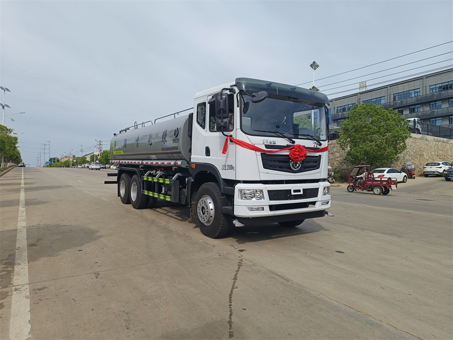 東風20噸灑水車產品標配前噴(鴨嘴)、后沖、后灑、側噴、后置式工作 平臺,平臺上配置綠化水炮(可 360°旋轉,既可以調成柱狀,也可 以調成霧狀,更可以調成直沖狀、大雨、中雨、小雨、毛毛雨),配 備優質大功率專用灑水泵(可自吸自排,可從河里或池塘抽水到罐體), 取力器,雜物過濾網,消防接口,自流球閥系統、取力器、球閥、濾網 均為國家標準產品,主管道加粗,法蘭墊、法蘭盤加厚,大通徑球閥。 整體具備性能優良安全可靠、效率高、流量大、維修方便等特點