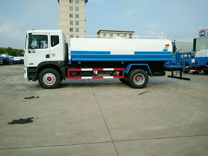 灑水車性能簡介;吸程≧7米,灑水寬度≧14-16米,射程≧25-40米,引水時間<5min,流量60m3/h。前沖(噴)、后灑、帶側噴(花灑)、帶后工作平臺、平臺上安裝綠化灑水高炮(炮噴射形狀可調節:直沖、大雨、中雨、毛毛雨、霧狀、可連續調節,360°旋轉),配消防接口,自流閥,濾網,帶自吸自排功能。配備大功率專用灑水泵,泵可自吸自排,安裝過濾網,帶消防接口,可通過消防栓進水,帶自流閥,隨車選裝20米綠化卷盤,可噴灑農藥,罐體金屬漆。罐體有橢圓和方圓罐兩種,可根據用戶的要求定做。