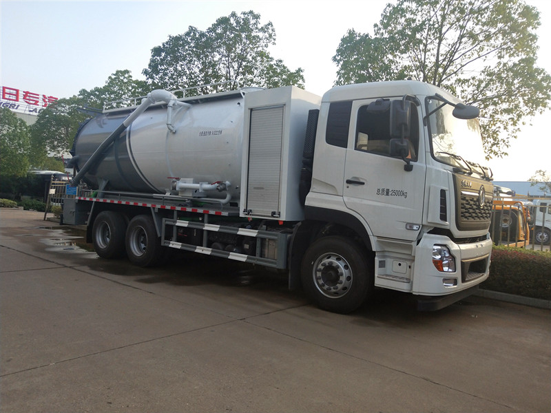 吸污車專用部分由取力器、傳動軸、真空吸污泵、壓力罐體、液壓部分,管網(wǎng)系統(tǒng)、真空壓力表、視糞窗、洗手裝置等組成,隨車配置大功率真空吸污泵和優(yōu)質(zhì)液壓系統(tǒng),罐體封頭一次壓鑄成型、罐體可后開、雙頂自卸。罐內(nèi)污物可通過后蓋直接傾倒,具有真空度高(比吸糞車的吸力更大)、噸位大、效率高、用途更廣泛的特點。